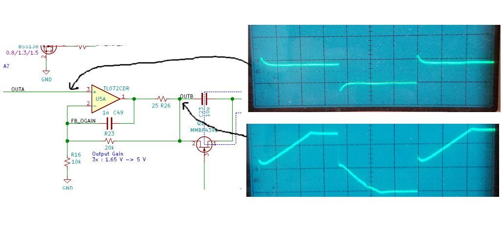 Since resistance increases substantially as VDS drops, the filtered waveform has a hard time actually getting down to 0 V. This makes envelope functionality fucking blow, basically. The envelope drops rapidly and then levels off somewhere above 0 V, so it spends most of its time at a constant voltage below the peak. It's like an ADS without the R. It just sustains forever.