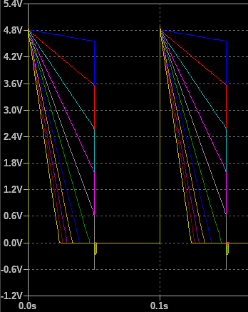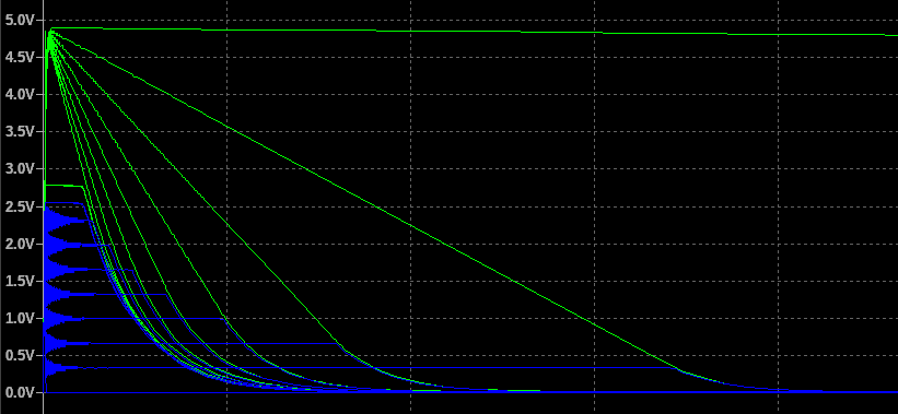 - In particular, the control voltage only gets as low as about half the 50% voltage, which should correspond to just twice the decay time.