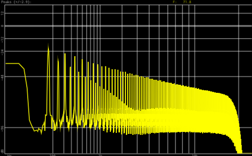 The good news is that the rev00 filter seems pretty well-behaved. Without a working ext-clock, there are limits to how far I can test it, but at the lowest output frequency I could achieve, it seems pretty well-behaved, indicating that the guard ring isn't really necessary as there are no board-associated leakages significant enough to cause problems.