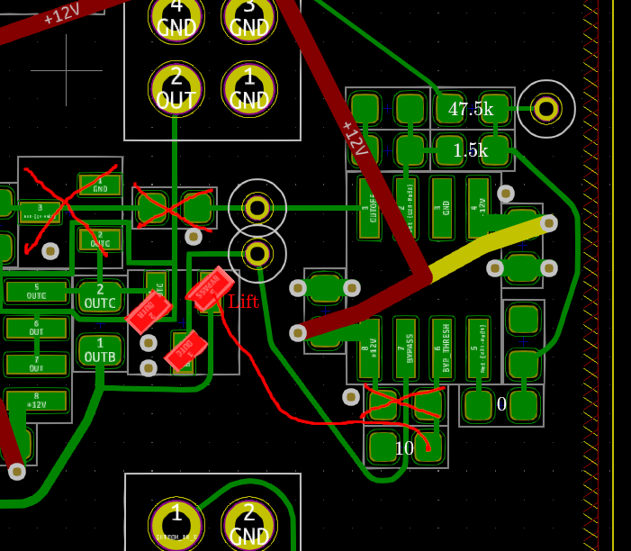 To that end, I actually want to reduce the pre-filter gain back to 1 so that I can just tie the comparator input to gnd and drive the bypass FET gate at -9 V without worrying about killing it. And also so that I can get relevant characterization data for the next revision.